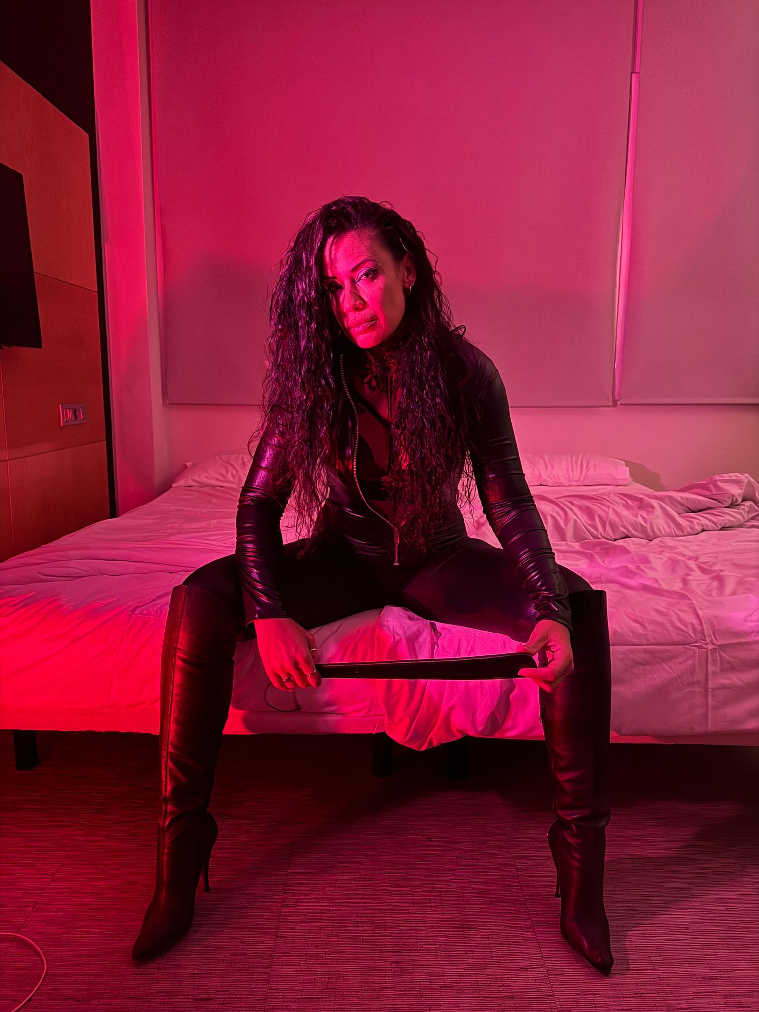 Cada detalle de mi vestimenta está cuidadosamente elegido. El cuero, el látex y los tacones no son solo adornos, son extensiones de mi poder. Me definen la elegancia, el fetichismo y una feminidad firme, segura y desafiante.